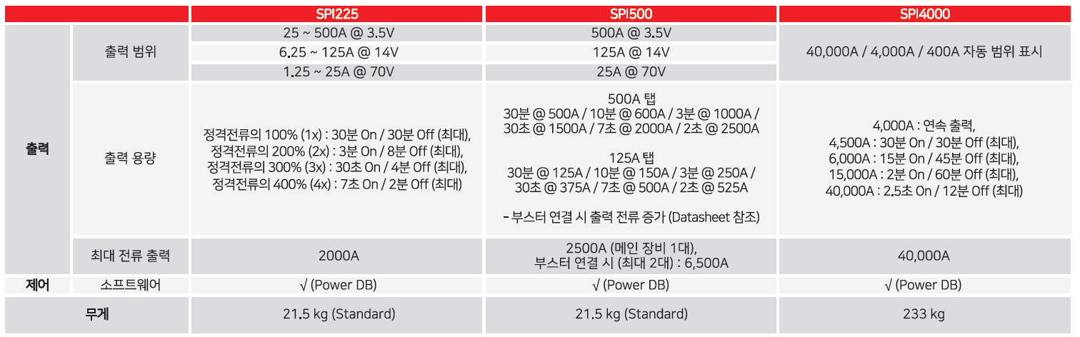 그 정확성이 일정하지 않은 단점이 있었으나 SPI225는 PC 제어를 통해 원하는 전류의 값을 입력하여 장비에서 정확한 전류를 출력할 수 있게 하였습니다.