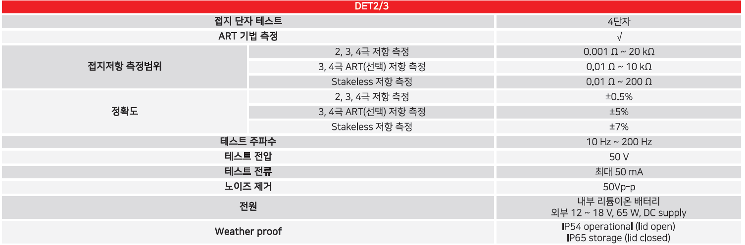 DET2/3은 자동 접지 테스터로 견고하고 소형이며,