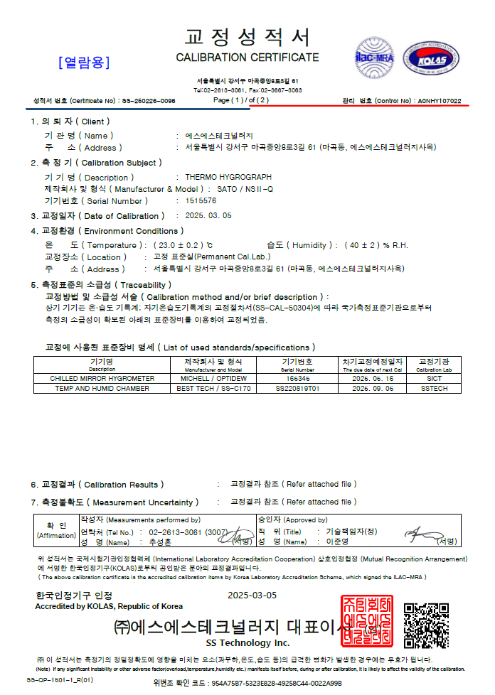 Hygrothermograph(측정범위: -15 ~ 50 °C/ 0 ~ 100% RH)