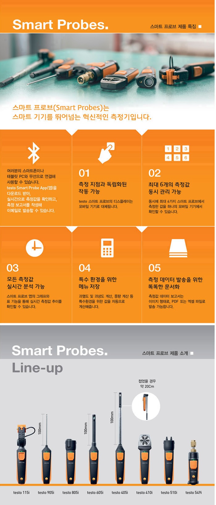 - 실내, 덕트, 챔버의 빠르고 정확한 온 · 습도 측정 가능