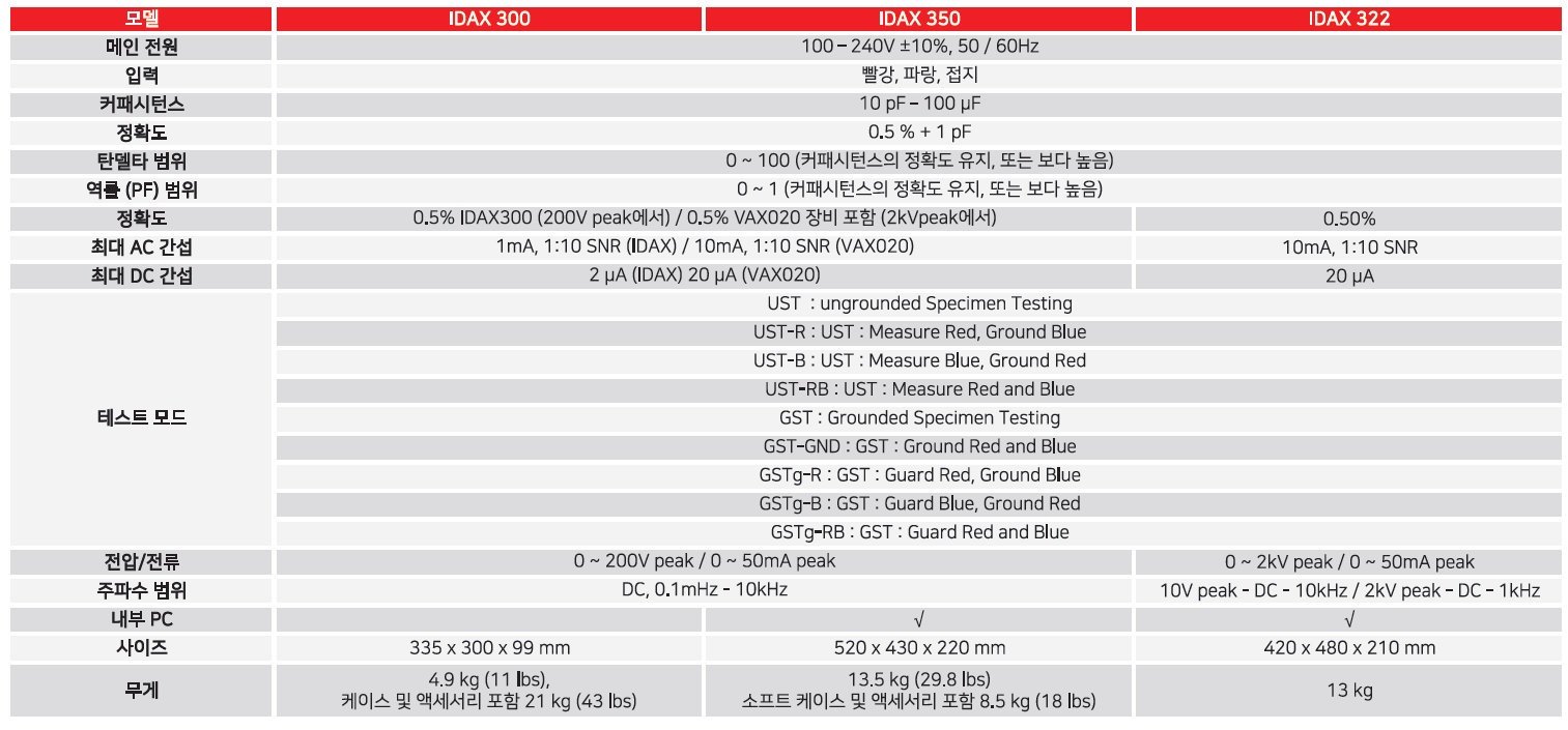 IDAX는 주파수별 변압기의 Tan Delta/PF 값을 측정하는 장비로 측정한 결과 값은 변압기 내부의 수분 함유 정도를 분석할 수 있습니다.