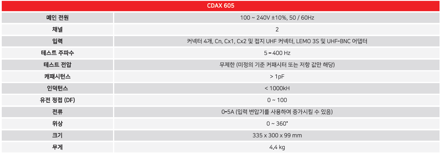 CDAX605는 외부 전원 / 발전기와 함께 사용되는 커패시턴스 및 유전정접 테스트 세트입니다.