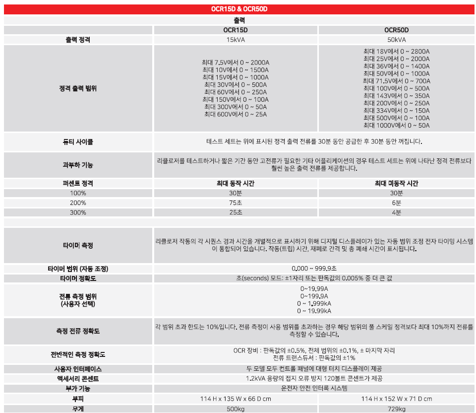 OCR15D 및 OCR50D는 출력 전류를 안정화하기 위해 임피던스 보상 네트워크와 함께 가변 고전류 출력을 제공합니다.