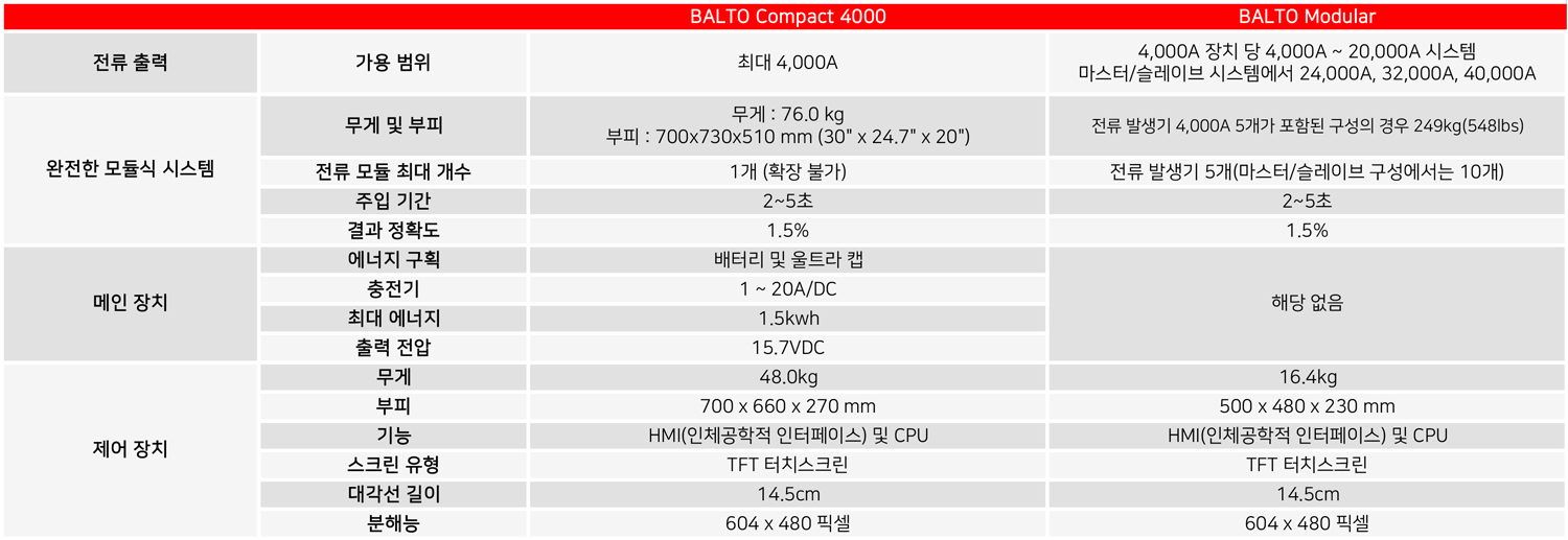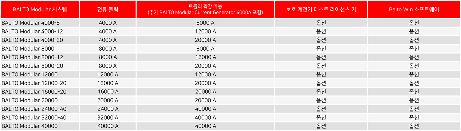 Megger BALTO 시스템은 DC 고속 회로 차단기 제조업체 및 사용자의 니즈를 충족할 수 있도록 최대 40,000A(BALTO Compact 4000은 최대 4000A)까지 사용할 수 있습니다.